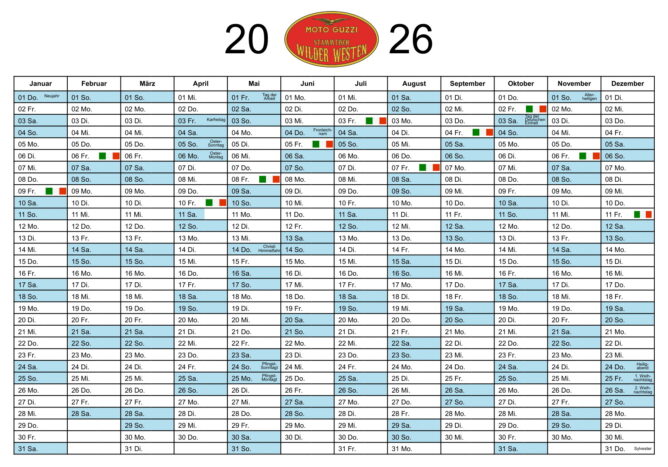 | Mai | 8.5.2026 Wegen 1.-Mai-Feiertag eine Woche später. |